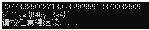 c = pow(int(b2a_hex(flag),16),e,n)