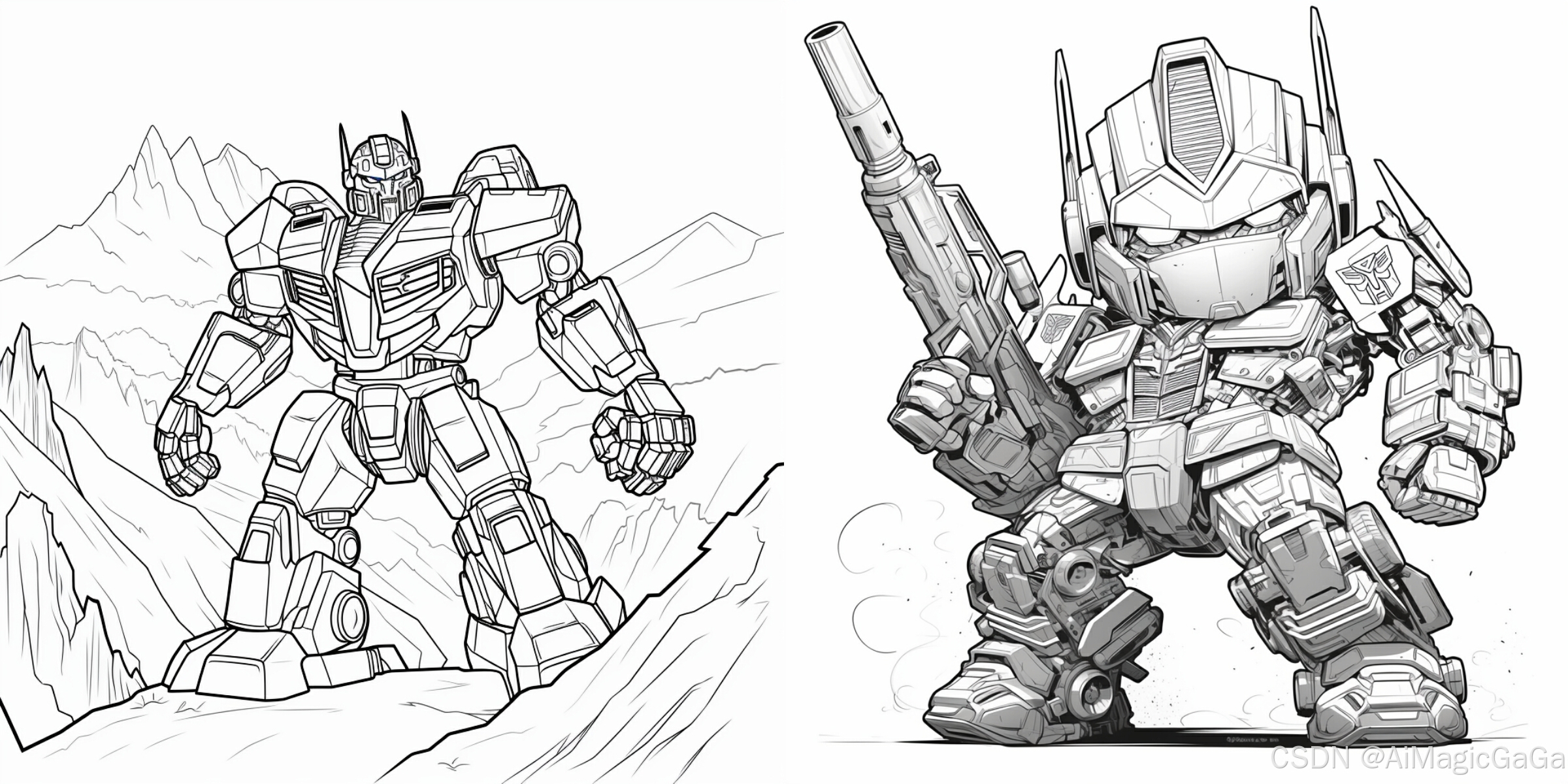 不需要写复杂的提示词来控图,通过简单的几步操作生成轮廓分明、细节丰富的线稿,后期也可以自己配色。主要是生成一些儿童画、绘本会比较方便,也有风格模式可选。