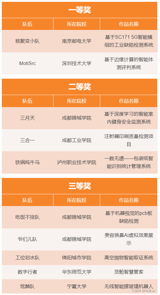 大赛共165支队伍报名5G智能物联网赛题。比赛期间,参赛队伍充分利用AidLux平台特性和优势,根据实际项目需求,发挥应用创新能力,在AidLux工程师的辅导和支持下设计开发了众多优秀作品,博得了评审专家们的肯定与好评。