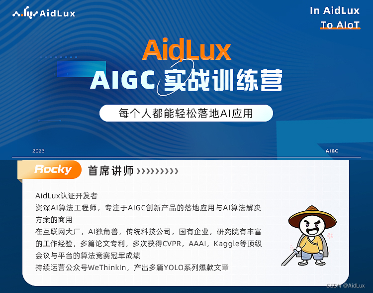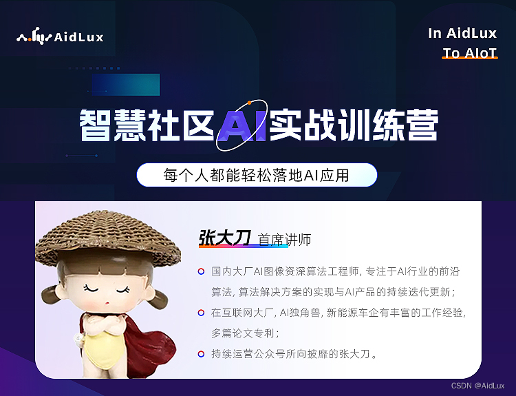 AidLux AI实战训练营是阿加犀联合具有丰富经验的行业专家、大厂工程师等联合举办的公益性质的培训活动。