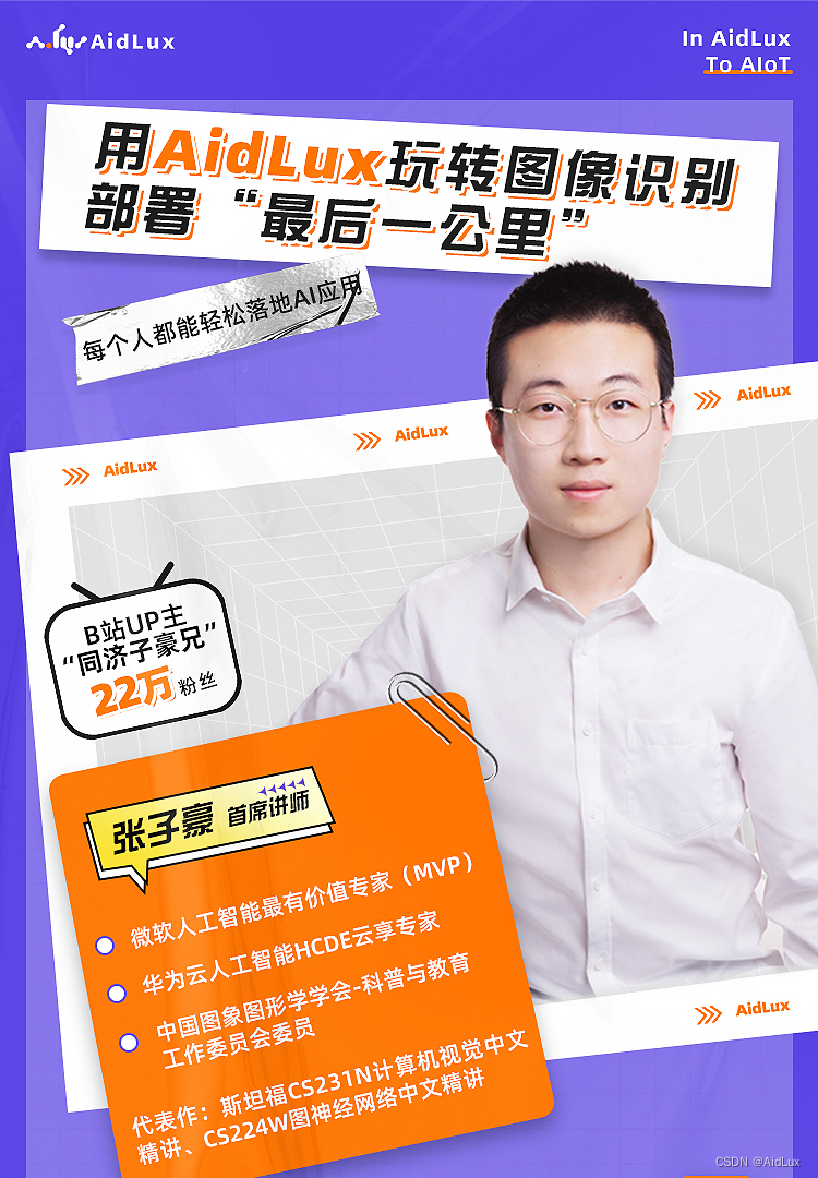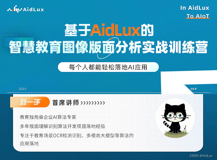 课程内容包括版面分析的背景与相关算法介绍、图像版面分析在PC端的实战流程,以及图像版面分析在AidLux平台部署应用。