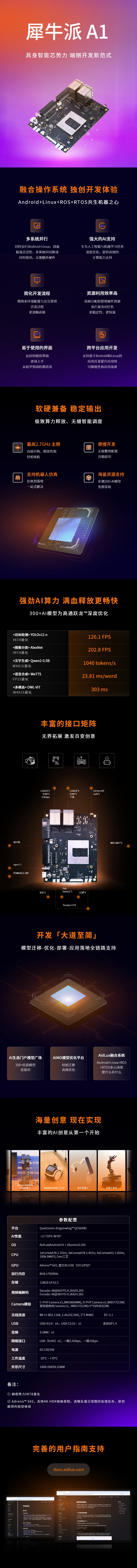 犀牛派A1是阿加犀的一款基于高通QCS6490平台的高性价比边缘计算开发板,具有12TOPS AI算力。开发板提供丰富的接口,支持多种网络连接模式,满足不同应用场景下的连接需求;具备强大的AI能力,预置大量场景算法、案例,涵盖智慧园区、智慧零售、智慧安防、明厨亮灶、智慧交通等多个领域,开箱即用。低成本、高效率地实现多行业、多场景的智能化需求。