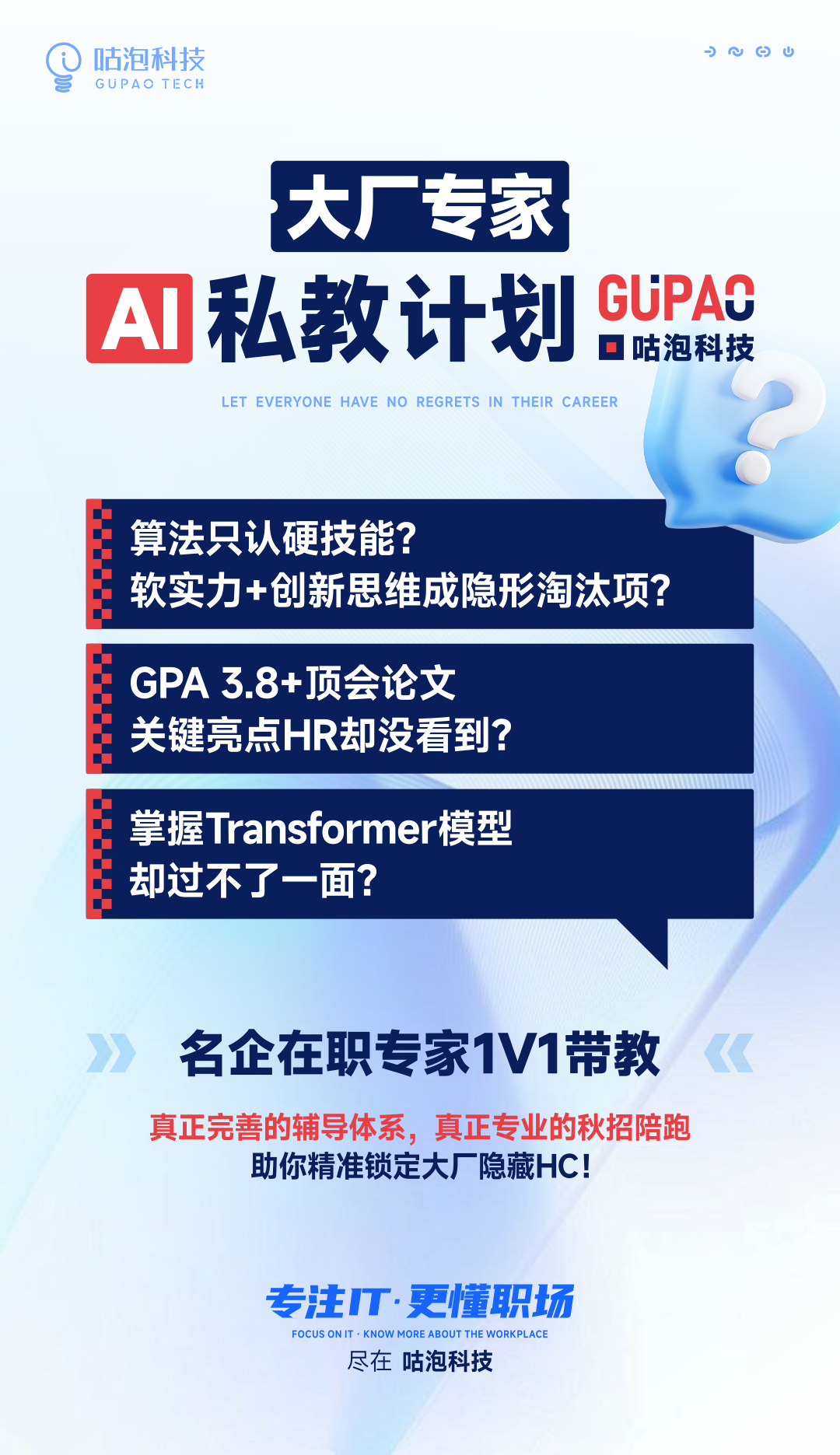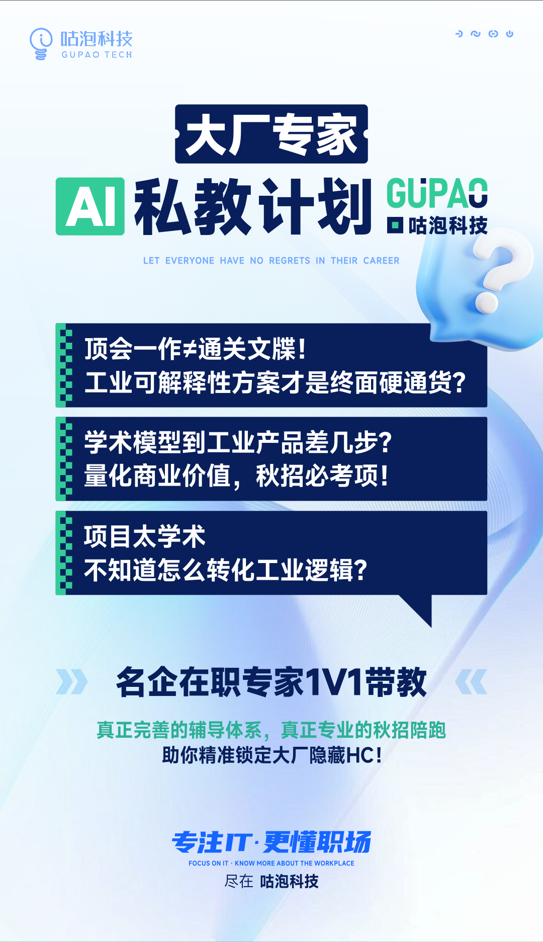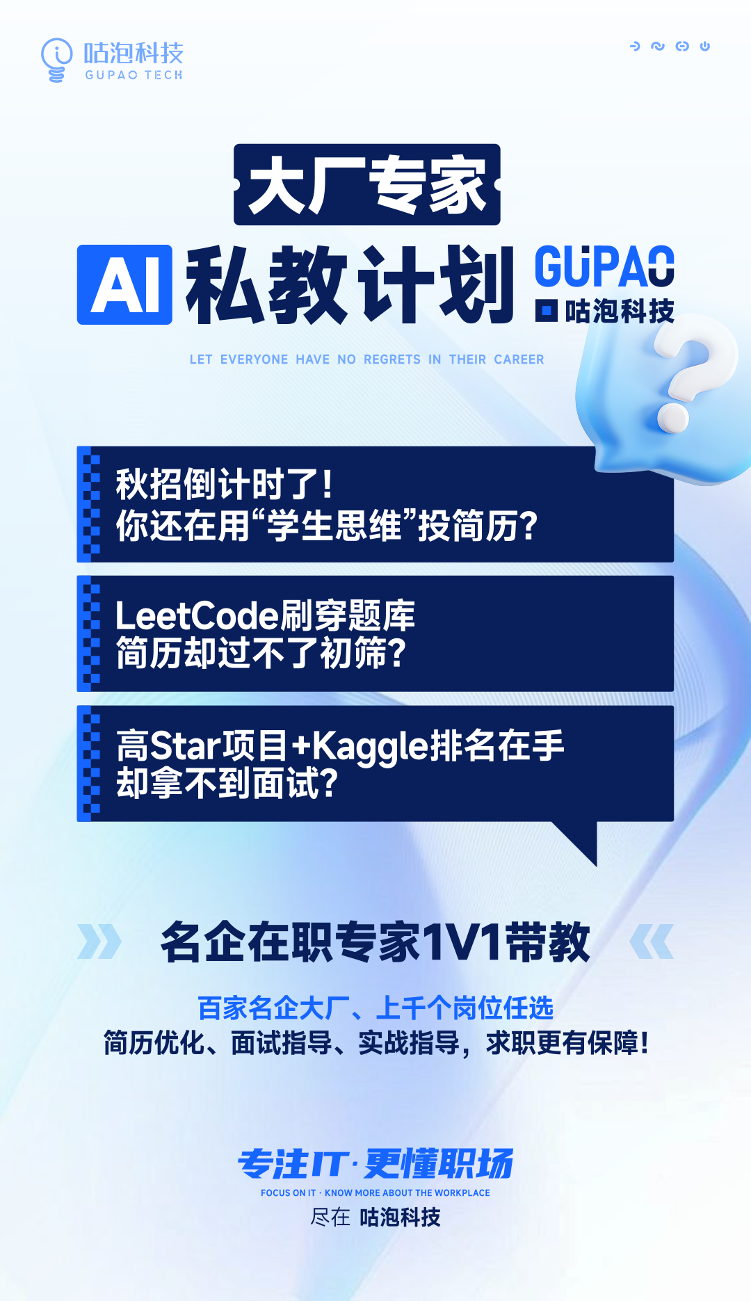 为此,咕泡科技-推出1V1 AI大厂协议保障计划,全力辅导你保进大厂!
