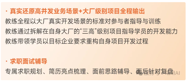 大厂专家私教计划,课程设计以大厂用人需求为方向,选择头部企业在职资深技术专家全程陪跑,提供可交付的教学结果,帮助你轻松实现“大厂梦”!