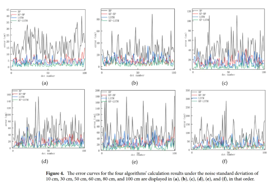 实际测量实验中,KF-LSTM 算法平均定位精度达 3.7cm ,相比其他算法有大幅提升,且稳定性最佳。