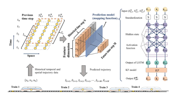 用LSTM分析时间序列数据,发现列车轨迹数据的长期依赖关系,为KF提供观测数据。