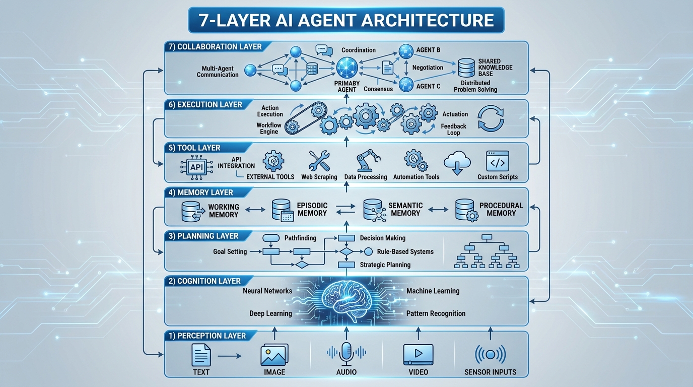 先说结论:一个可扩展的通用智能体架构,必须具备七个核心层次,每一层都有其不可替代的功能定位。这不是理论堆砌,而是从无数次踩坑中总结出的工程实践。