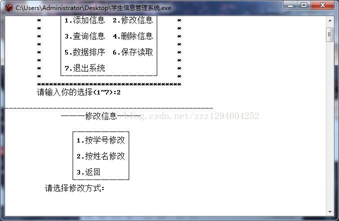 printf("\n修改完毕!\n\n按1返回主界面,按其他键退出程序! ");