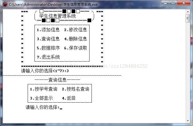printf("\t* │3.查询信息 4.删除信息│ *\n");