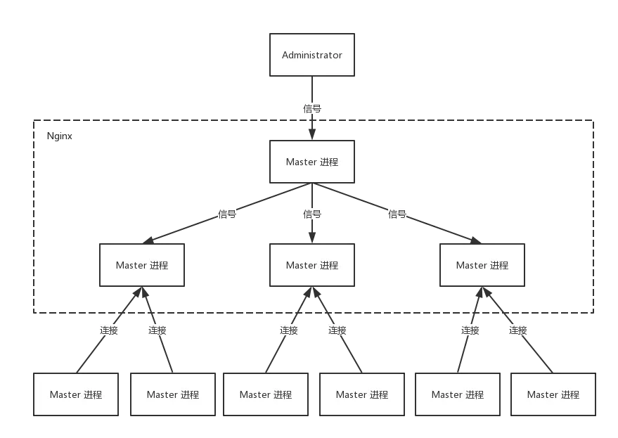 master进程主要用来管理worker进程,包含:接收来自外界的信号,向各worker进程发送信号,监控worker进程的运行状态,当worker进程退出后(异常情况下),会自动重新启动新的worker进程。