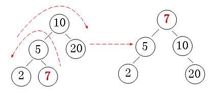 “节点7”顶成“根节点”,操作类似AVL的双旋转,比如下图: