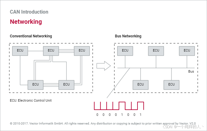 CAN(Controller Area Network,控制器局域网)是一种串行通信技术,是Bosch开发的汽车通信系统,专门用于在汽车电子控制单元(ECU)之间实现可靠的数据交换。