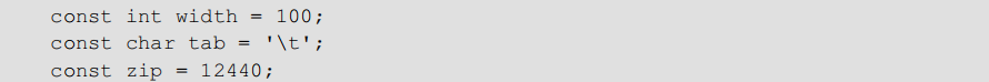 通过使用 const 前缀可以定义指定类型的常量,就像定义一个变量一样: