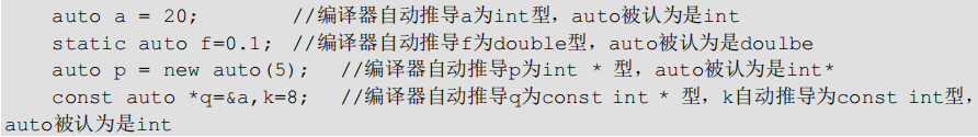 C++11 支持隐式类型定义了,即不指明变量的具体类型,而让编译器推导出变量的类型,而且是在编译阶段进行推导的。相当于C#中的var。