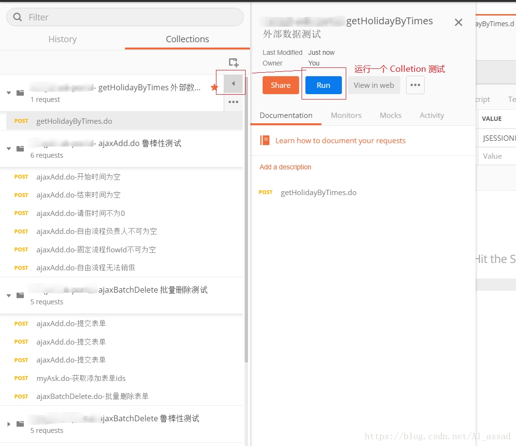 postman 自动化测试提供了一个很强大的功能,可以对一系列的 HTTP 请求归档为一个 Colletion ,可以一次性进行 Collection 下的所有 HTTP 请求,并获取每一个请求的断言通过率(稍后介绍postman 断言功能),类似于 Java 的 UnitCase 单元测试,使用这个功能,可以很方便地对接口进行鲁棒性测试;