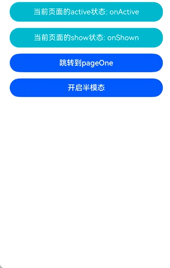 如下的示例演示了通过路由push操作,与激活、隐藏半模态来触发这两组生命周期的行为: