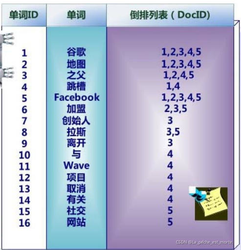 文档编号:搜索引擎内部会给每个文档设置一个唯一的文档编号