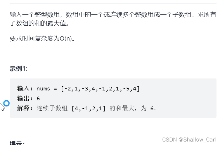 我们最重要的就是弄清楚dp数组的含义--以nums[i]结尾的最大连续数组和.