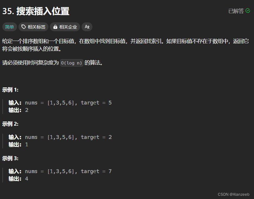 例题:35.搜索插入位置
