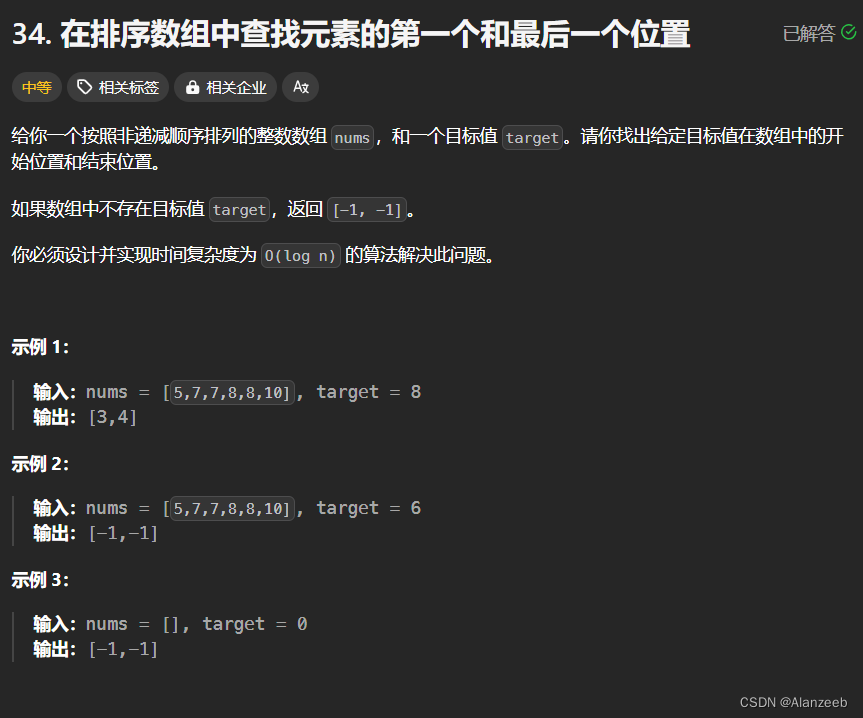 这一题讲解左右端点模板:在排序数组中查找元素的第一个和最后一个位置