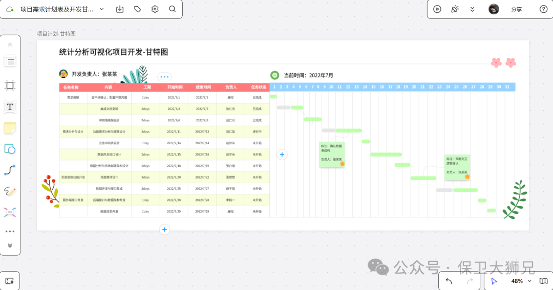 不要光画图,还要动态更新。项目中途延期或提前,甘特图要跟着改。