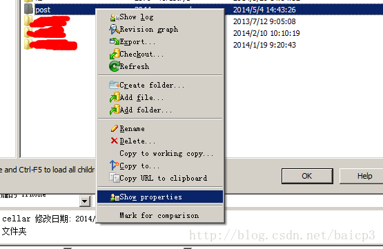 左面空白处右键 -->TortoiseSvn-->Repo-browser 找到我们刚才上传到svn的项目post