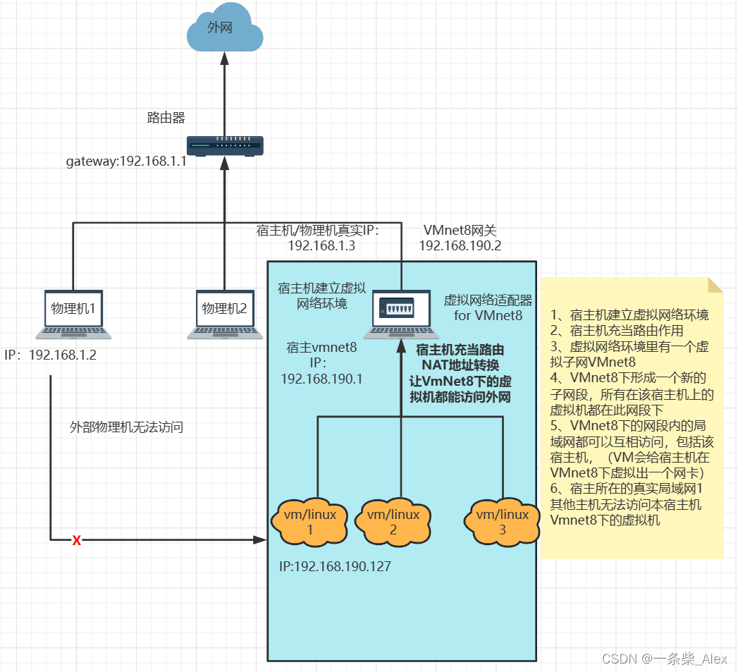 物理机真实IP是192.168.1.3,它相当于一个路由,同时也是提供NAT服务的作用。