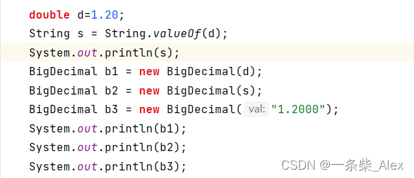 这里注意一个问题,对于double 类型的数据,最好不要直接传入BigDecimal构造函数,创建 BigDecimal对象,会出现精度问题,计算错误,建议将double转换成String