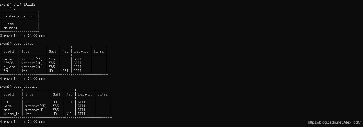 | name | VARCHAR(25) | 班级名称 | 否 | 否 | 否 | 否 | 无 |