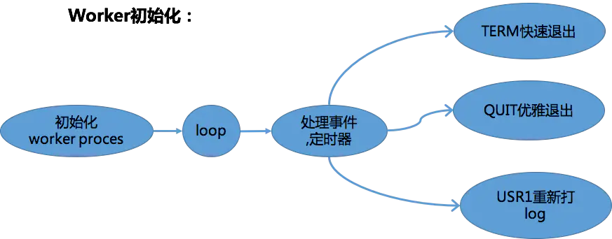 Worker 进程:处理客户端请求,从主进程处获得信号做相应的事情。