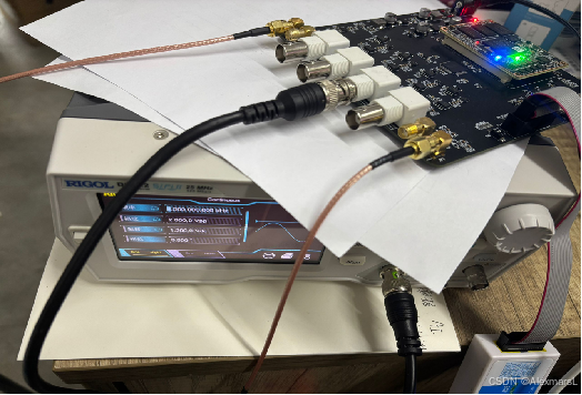 硬件设计的是底板+核心板结构,核心板用的正点原子7020,测试时候用了个函数发生器产生的正弦波给AD采,结果如下