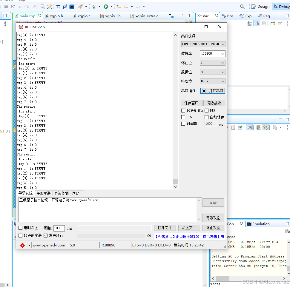 用示波器打了一下,上位机用的伏特加串口示波器,采到的数据从PS端的串口实时输出。