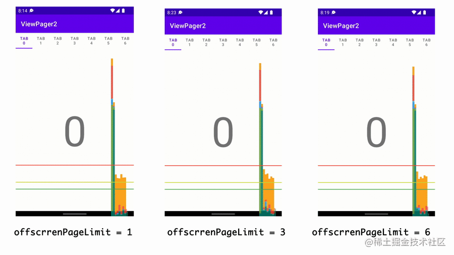 这种做法无疑是很不规范的,为什么说不规范呢?这就引申出我们下一个问题了,即OffscreenPageLimit的不同赋值,会对ViewPager2产生什么样的影响呢?