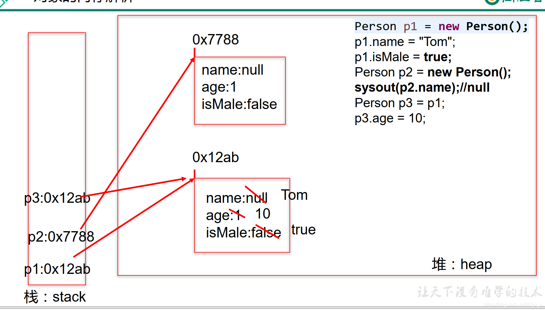 //将p1变量保存的对象地址赋值给p3,导致p1和p3指向了堆空间中的同一个对象实体。