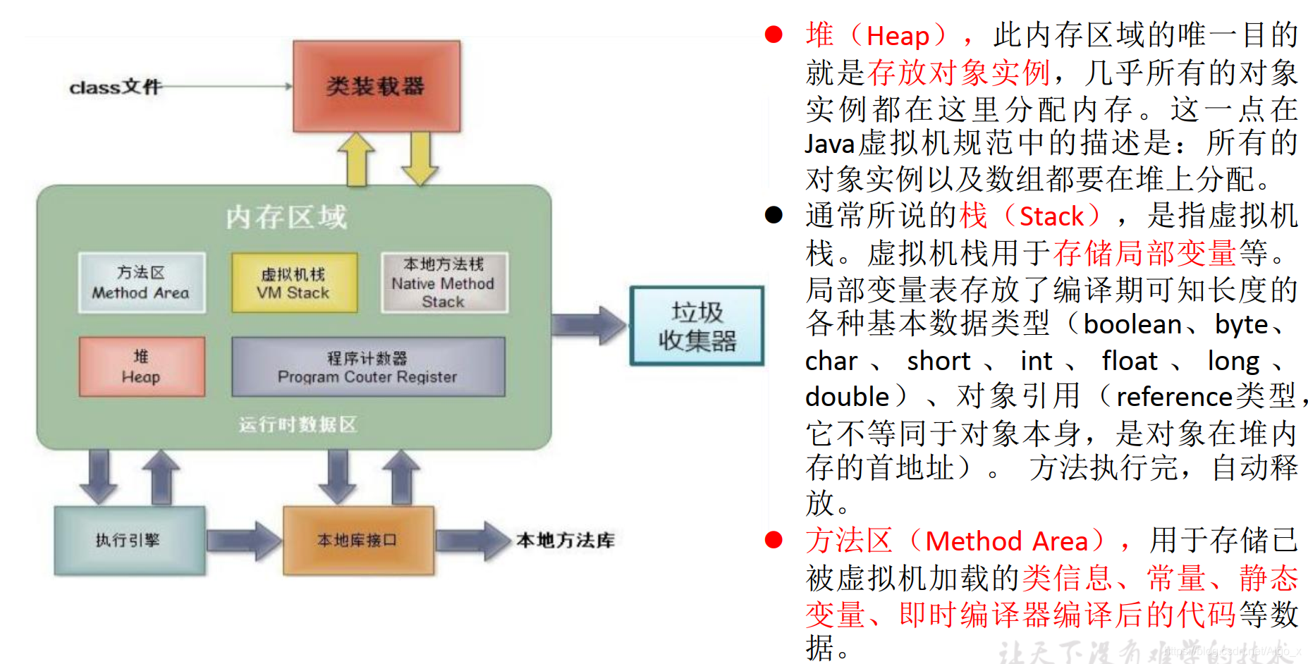 1. 内存结构:栈(局部变量)、堆(new出来的结构:对象(非static成员变量)、数组)