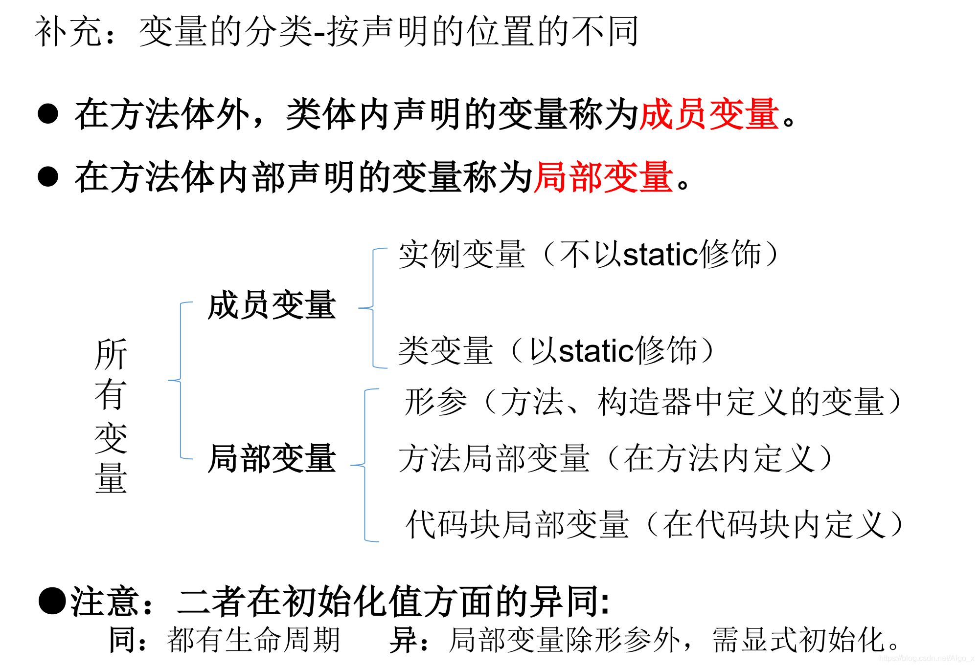 2. 变量:成员变量 vs 局部变量(方法内、方法形参、构造器内、构造器形参、代码块内)