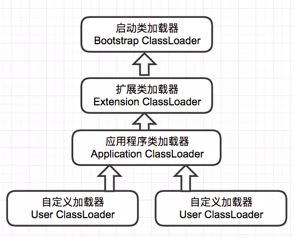 如果一个类加载器收到了类加载器的请求.它首先不会自己去尝试加载这个类.而是把这个请求委派给父加载器去完成.每个层次的类加载器都是如此.因此所有的加载请求最终都会传送到Bootstrap类加载器(启动类加载器)中.只有父类加载反馈自己无法加载这个请求(它的搜索范围中没有找到所需的类)时.子加载器才会尝试自己去加载。