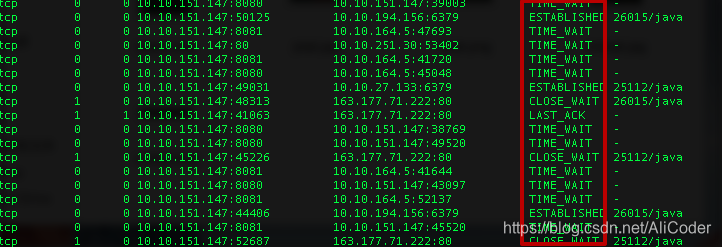 查看网络io状况,一般使用的是netstat工具。可以查看所有连接的状况、数目、端口信息等。例如:当time_wait或者close_wait连接过多时,会影响应用的相应速度。