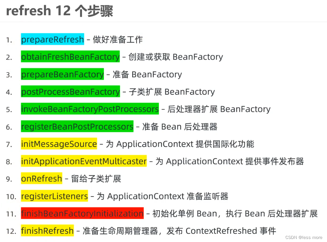 // 第三步:BeanFactory的预准备⼯作(BeanFactory进⾏⼀些设置,⽐如context的类加载器等)
