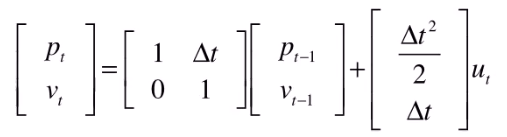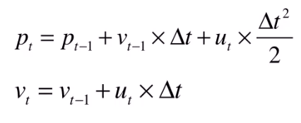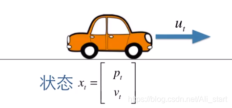 假设有一个小车在行驶,它的状态是,包括它的 位置p 和 速度v,加速度u