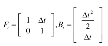 令 F 为状态转移矩阵(从上一时刻的状态推测这个时刻的状态),B 为控制矩阵(控制量u如何作用当前状态)
