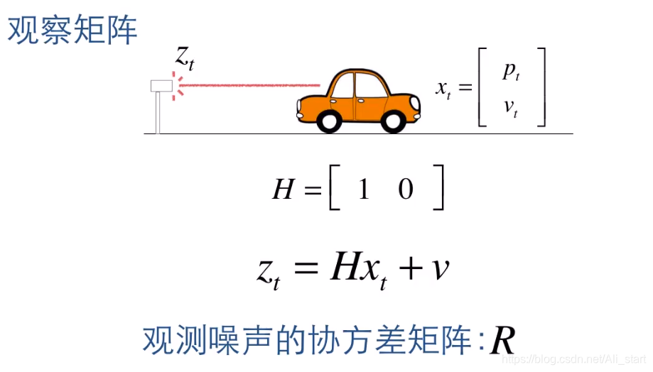 一个观测量 Z 可以通过车辆当前的状态 x · 观测矩阵H 和一个误差组成