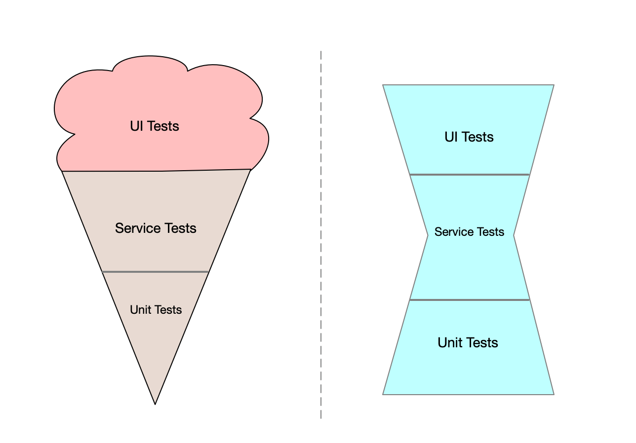 为了维持金字塔形状,一个健康、快速、可维护的测试组合应该是这样的:写许多小而快的单元测试,适当写一些更粗粒度的测试,写很少高层次的端到端测试。注意不要让你的测试变成冰淇淋或者沙漏那样子,这对维护来说将是一个噩梦,并且跑一遍也需要太多时间。