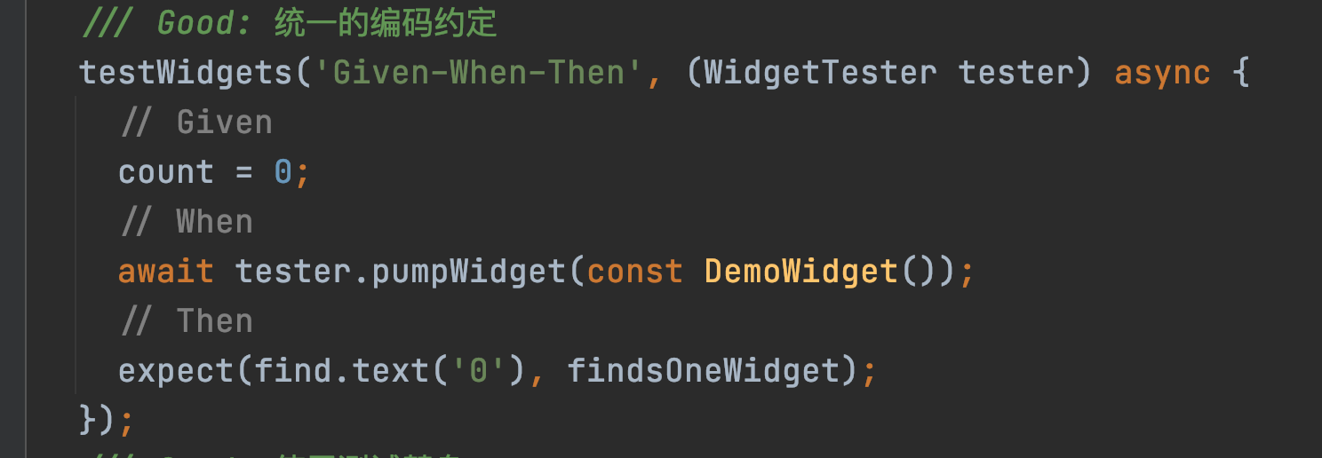 不论是AAA(Arrange-Act-Assert)还是GWT(Given-When-Then),统一的编码约定帮助保证测试代码的可读性、可维护性。
