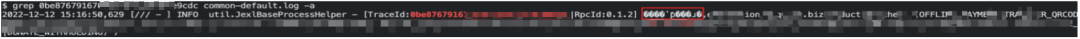2022-12-12 06:05:05,129 [0b26053315407142451016402xxxxx 0.3 - /// - ] INFO [SofaBizProcessor-4-thread-333] - [(interfaceName,methodName,1ms,Y,SUCCESS)(appName,ip地址,时间戳,Y)