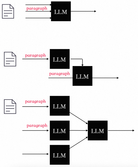 1)利用大模型的总结和推理能力来对长文档进行总结,因为本身长文档就是有很强的逻辑性的,普通的向量建模方式只能一定程度表征语义,如果用bert等传统的来说还有字数限制,对文章的内容进行高精准的提取(文章的表征放到离线),对于文章来说可以采用下面三种方式来进行总结;