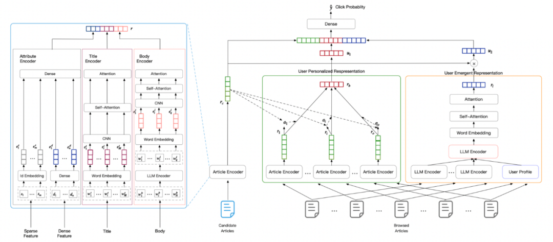 2)利用大模型的推理能力来对用户上线文来进行离线的推理,对用户行为进行建模,从用户繁杂的行为中找到背后的逻辑(用户的理解也放到离线),用户历史浏览的文章都会首先被LLM表征,然后利用LLM的COT能力来对上线文进行总结和表征;