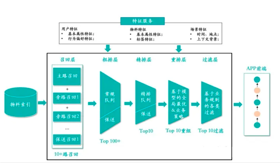 推荐系统发展了这么多年,只要是做过推荐系统的下面的架构大家已经耳熟能详了。