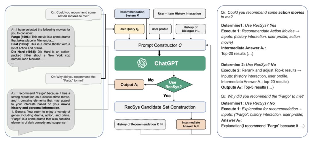 通过 LLM 的增强,在每次对话后都可以迭代用户偏好,更新候选推荐结果。和基于检索增强的QA一样,LLM与传统搜推系统结合,为了保证结果更加可靠,还需要增强一下。论文图如下,流程还是蛮清晰的。给推荐系统怎么使用LLM指明了一条路。