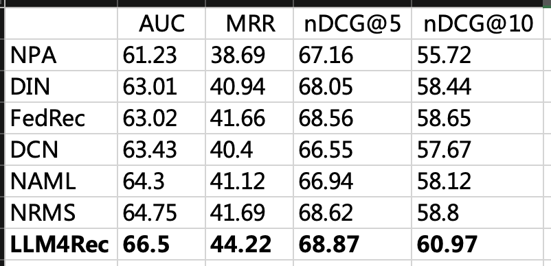 刚好我们在通过对相关的推荐场景快速的进行个性化升级之后,在新闻类的文章领域SOTA相关的论文有很多,在最近尝试了基于LLM相关的推荐改造,目前从离线来看效果还是蛮不错的。